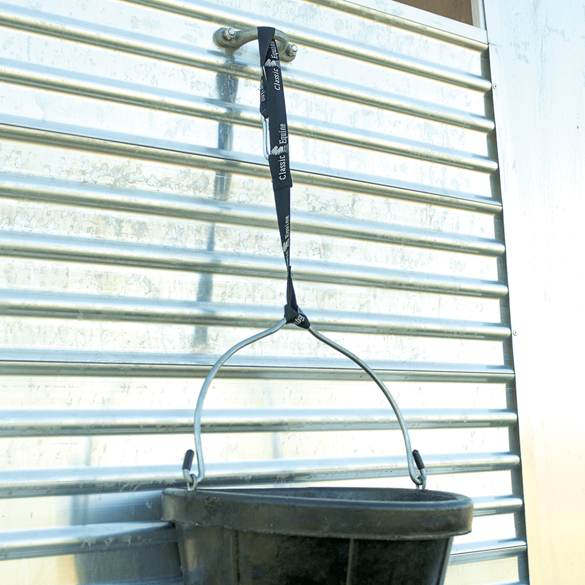 These Classic Equine Bucket Straps in Black are made of nylon webbing with an aluminum snap that is capable of holding up to 150lbs. Conveniently hang buckets at your stall or trailer, while showing your love for Classic Equine.