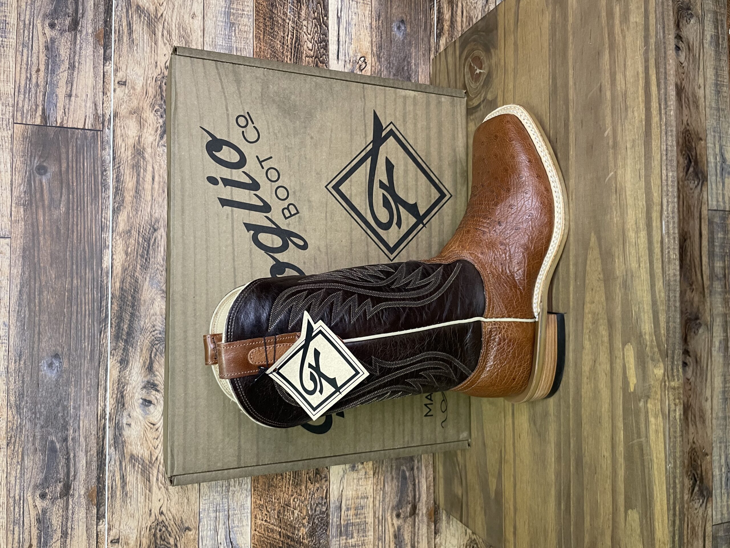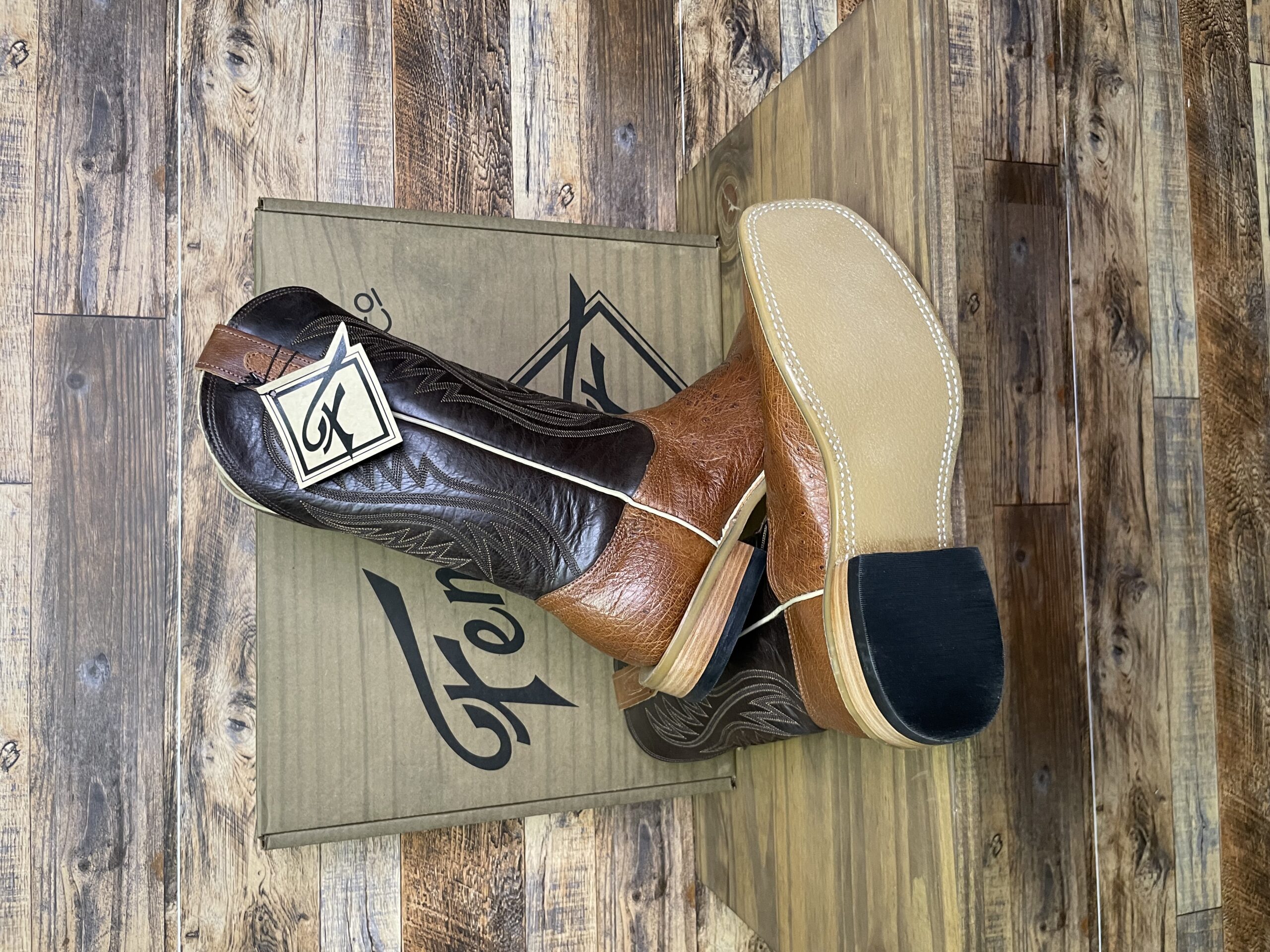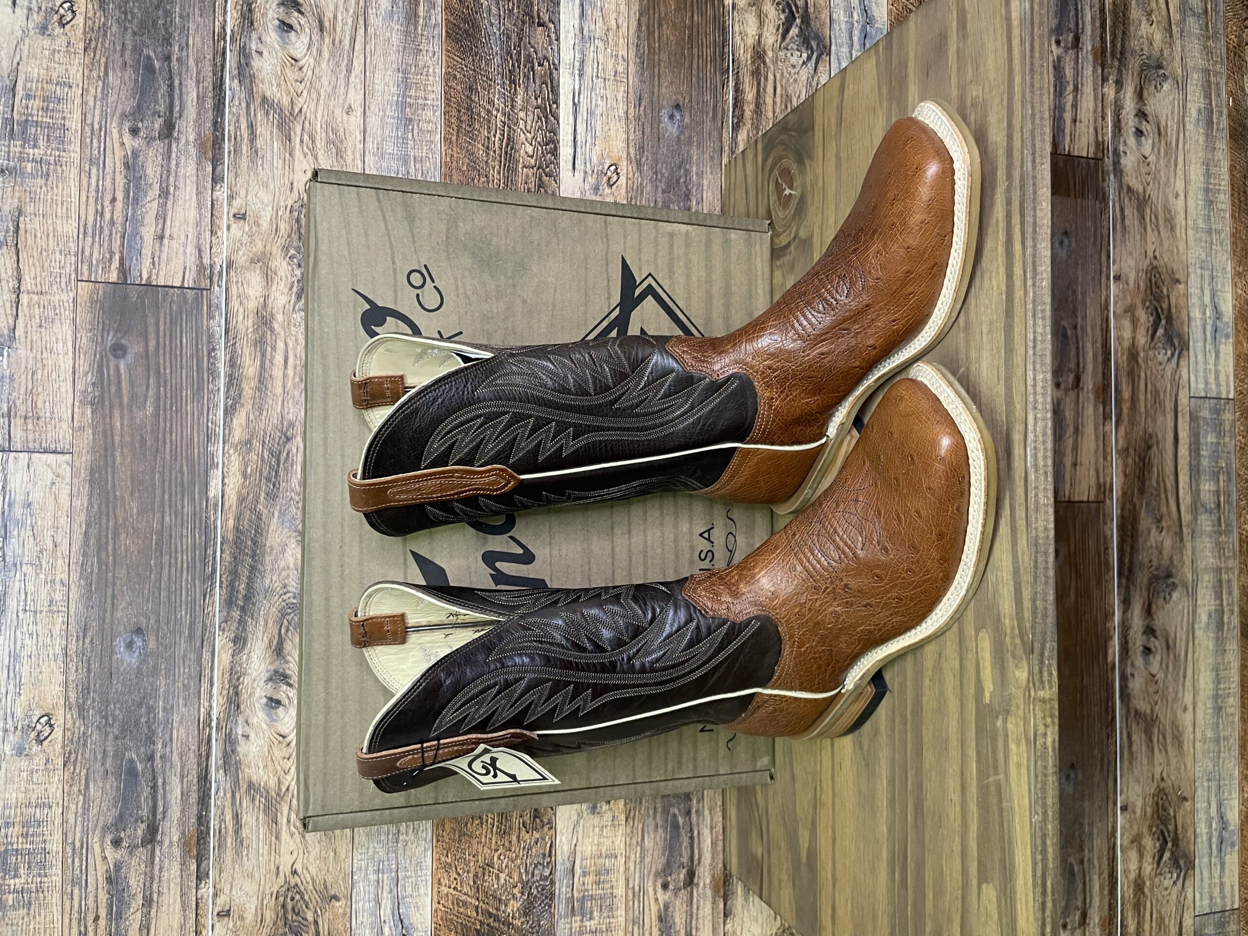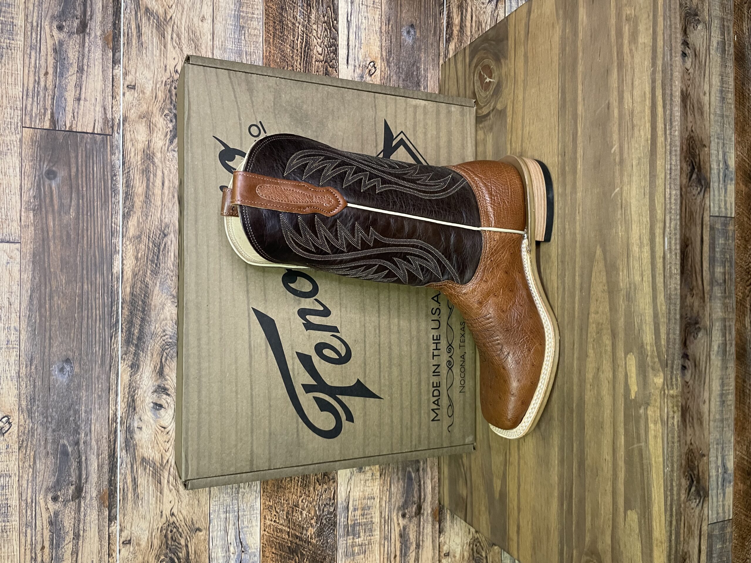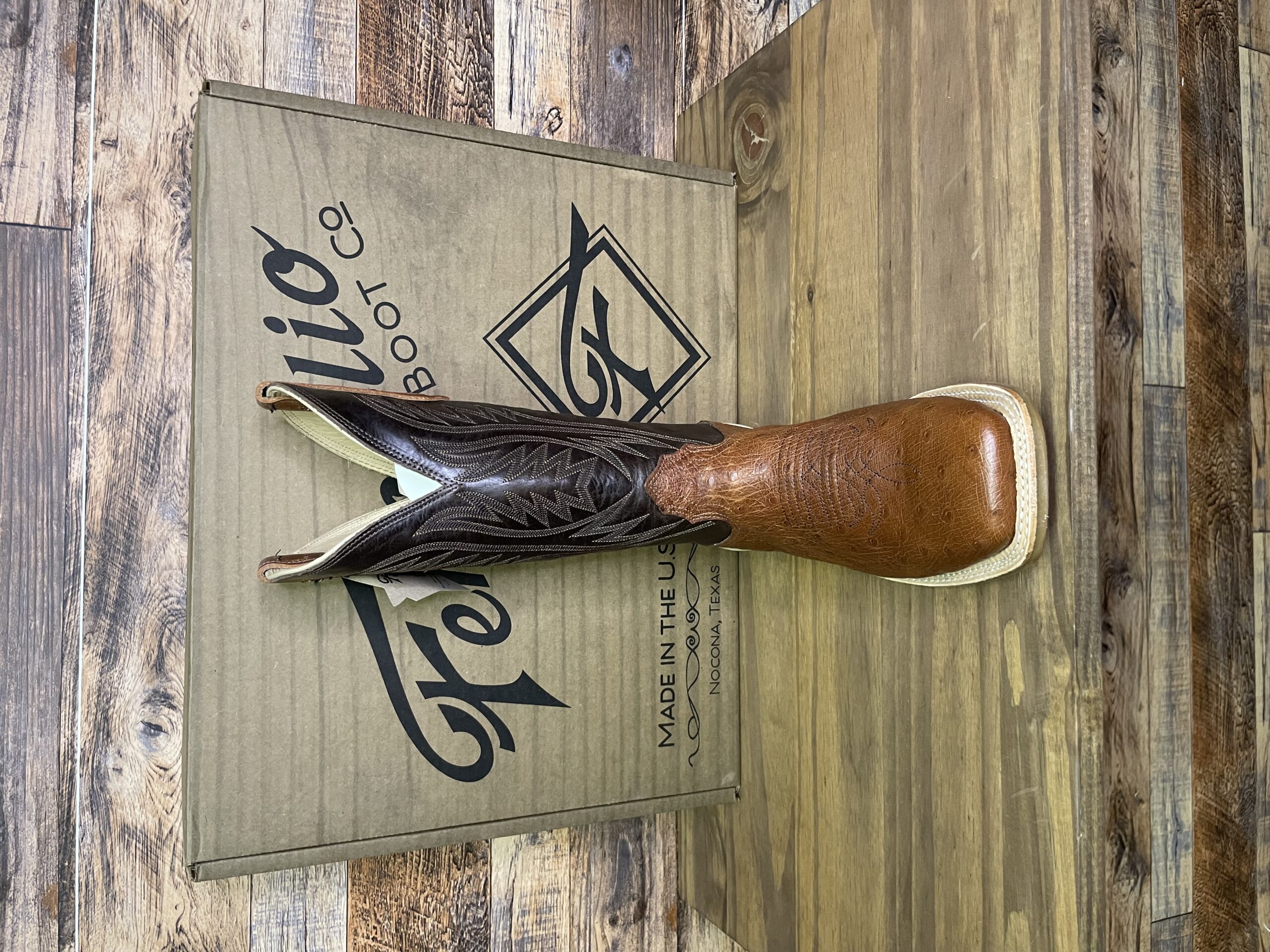 “There’s Nothing Finer than Fenoglio.” Look no further for your next pair of USA handmade boot than these Fenoglio Cognac Smooth Ostrich 12″ Nicotine boot.  Featuring a soft all brown cowhide boot, with their ranch tough OPU outsole, leather stacked heel, and leather lining.