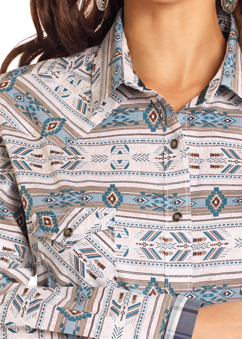 Ladies Panhandle Horizontal Southwest Teal LS Snap