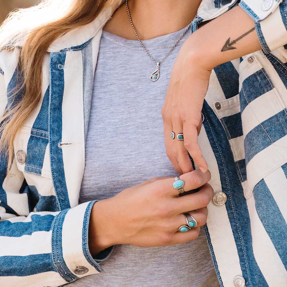 - Stone: Crafted turquoise & cubic zirconia