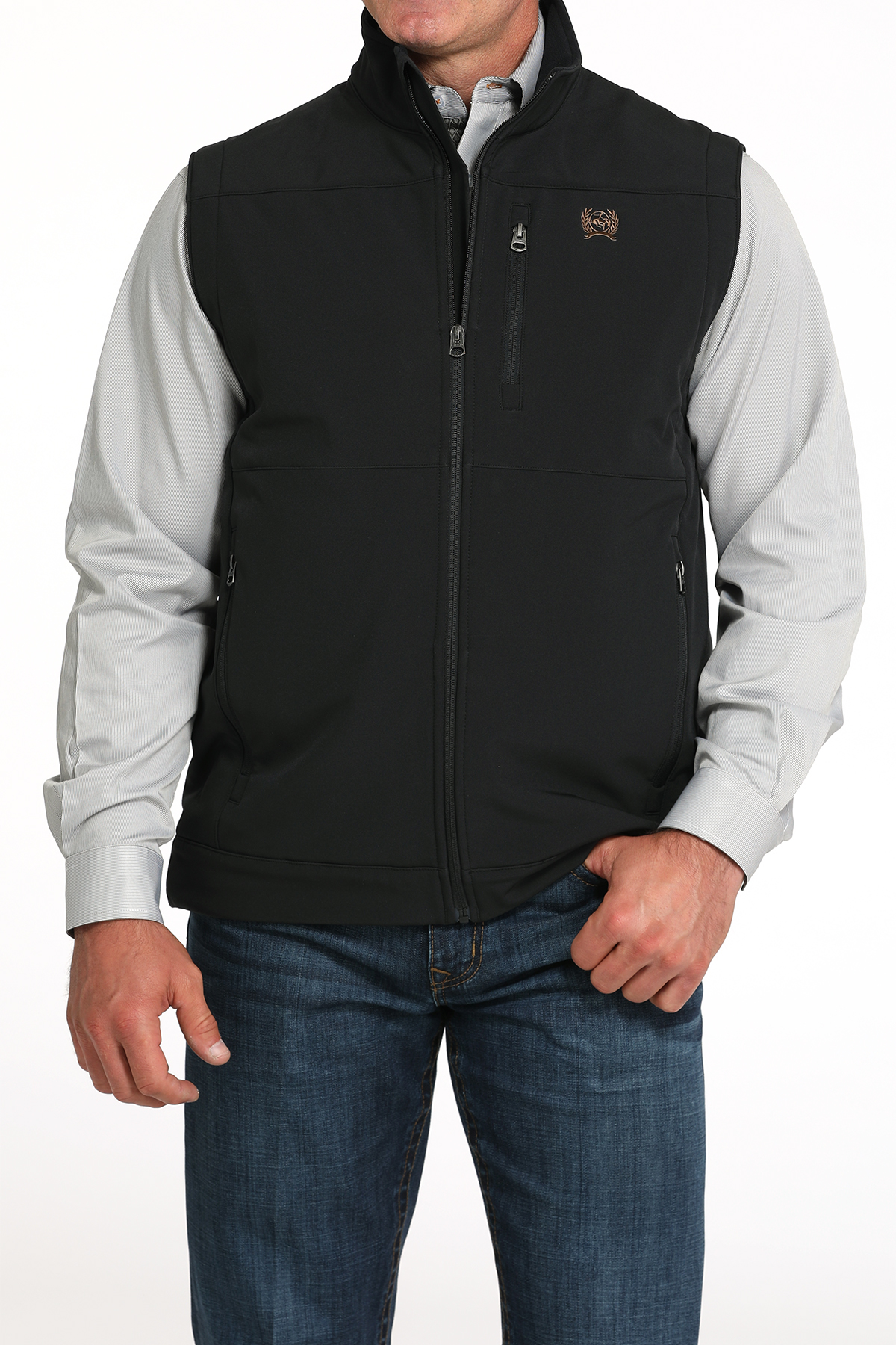 Layered over a crisp button down or comfortable Henley, this three-season Cinch Bonded Logo Vest CC Black offers the best in style and personal protection capability with two concealed inner pockets and a Velcro backed holster. Poly-spandex bonded construction features exterior pockets, 3D embroidery, and Durable Water Resistant (DWR) finish that ensures you keep warm and dry, and able to move freely as you go about the workday.