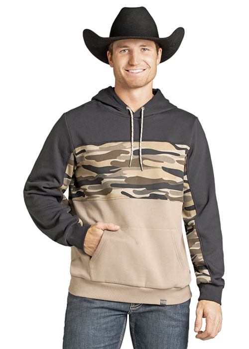 Rock & Roll Denim Camo Color Blocked Hoodie