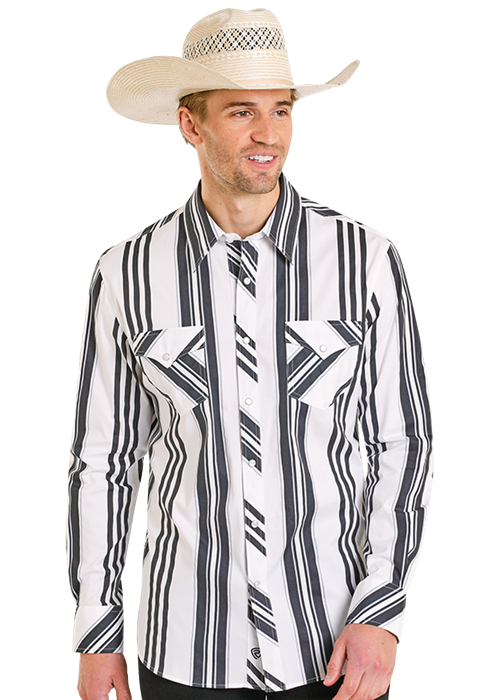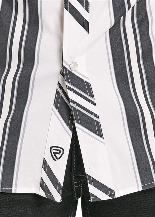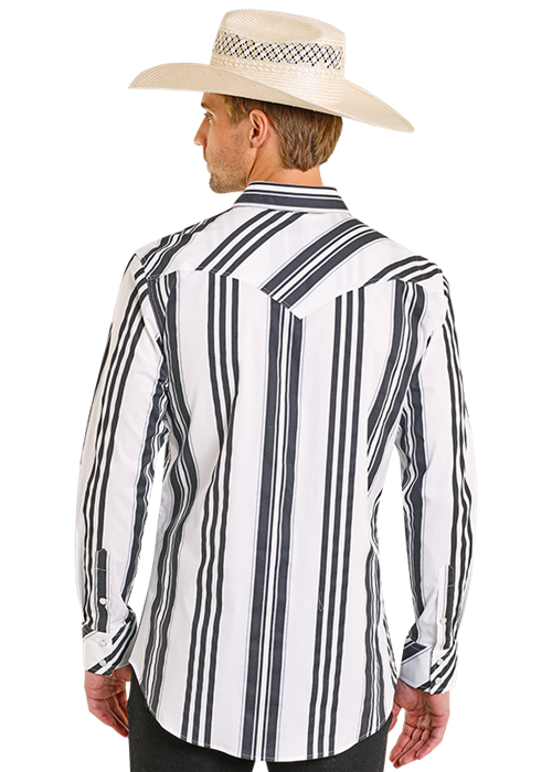 Rock & Roll Retro Blk/Wht Stripe Snap Stretch Long Sleeve