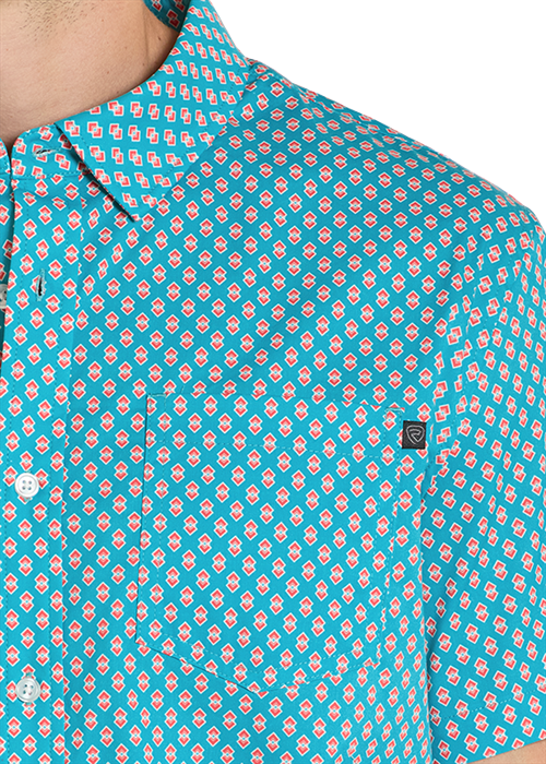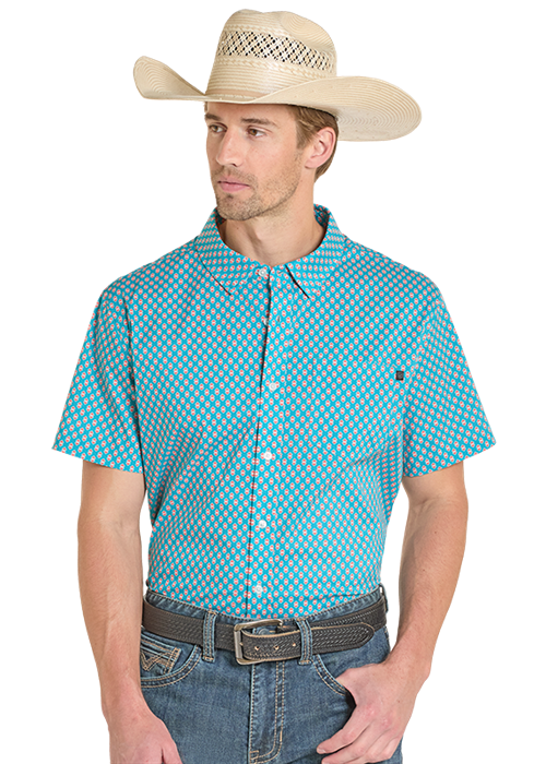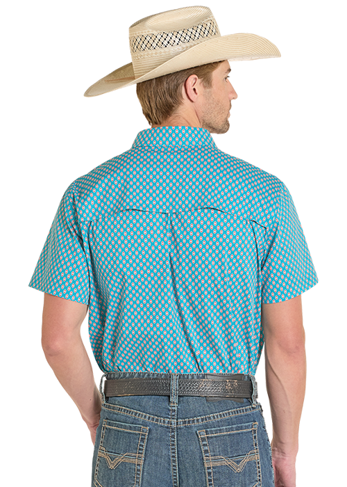 Rock & Roll Teal Diamond Tek Western Print Short Sleeve Shirt
