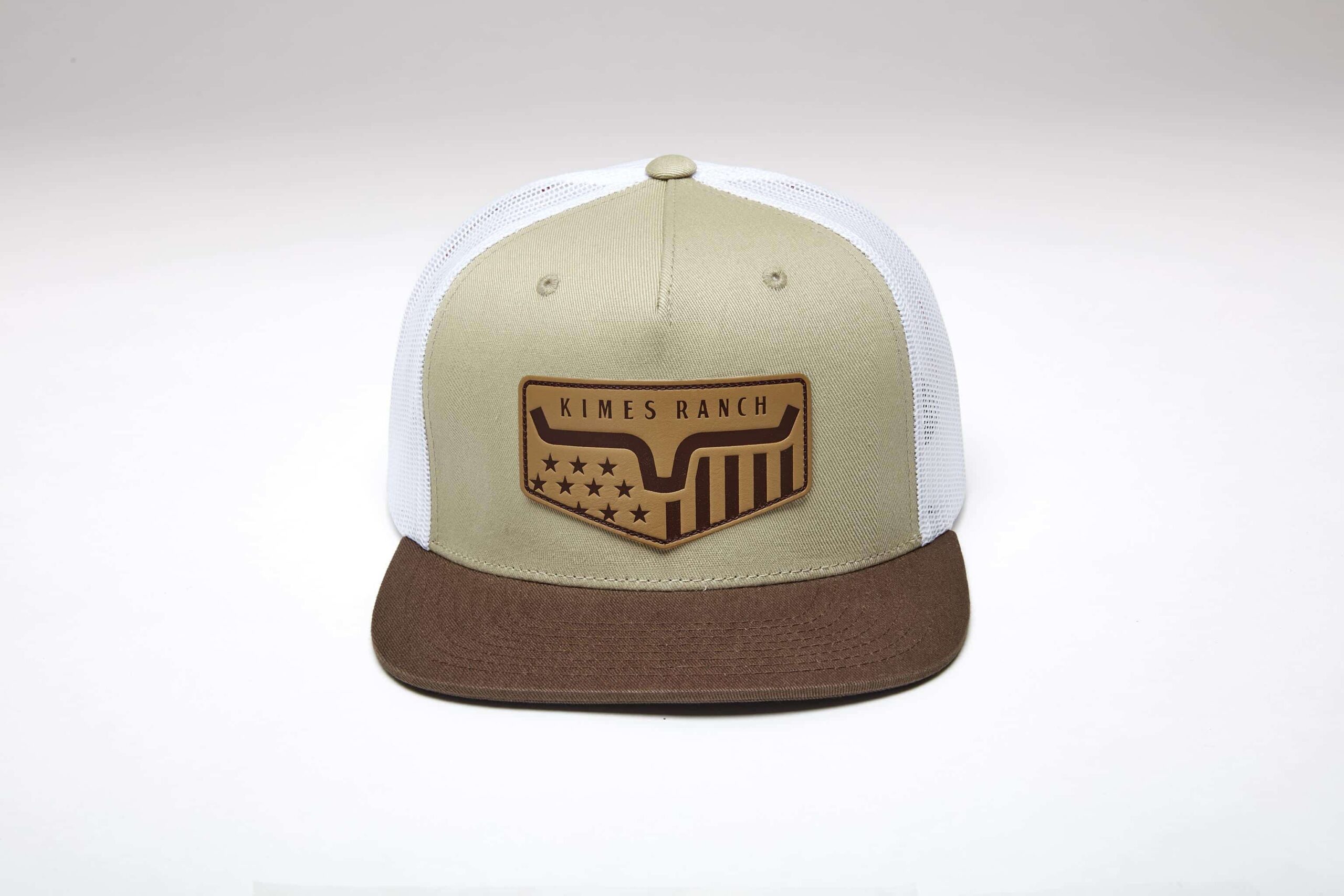 The Kimes Spangled Snapback Khaki embodies Western pride and modern craftsmanship. This 6-panel ranch hat features a high-profile, structured fit with a flat bill and premium details throughout. A genuine leather patch embossed with the Kimes Ranch logo and an American flag motif highlights its rugged character, while the faux suede bill adds texture and a refined finish.