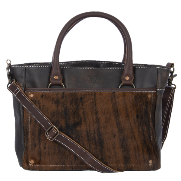 Our Brindle Cowhide Satchel is the perfect mix of sophistication and Western flair with genuine full grain leather and brindle hair on hide.
